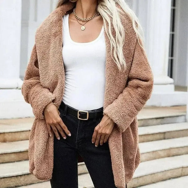 Kahverengi Peluş Hırka Uzun Kollu Trendy Çift Taraflı