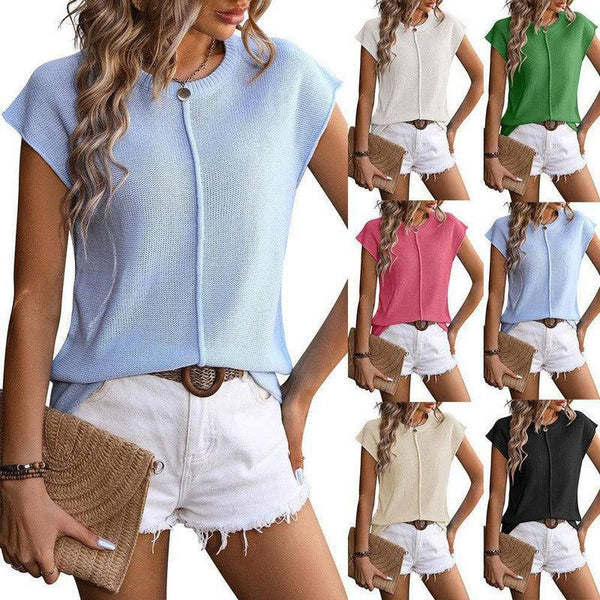 Yeni Örme Yuvarlak Yaka Kısa Kollu Üst Yazlık Günlük Gevşek